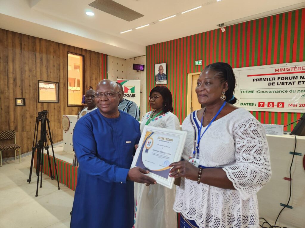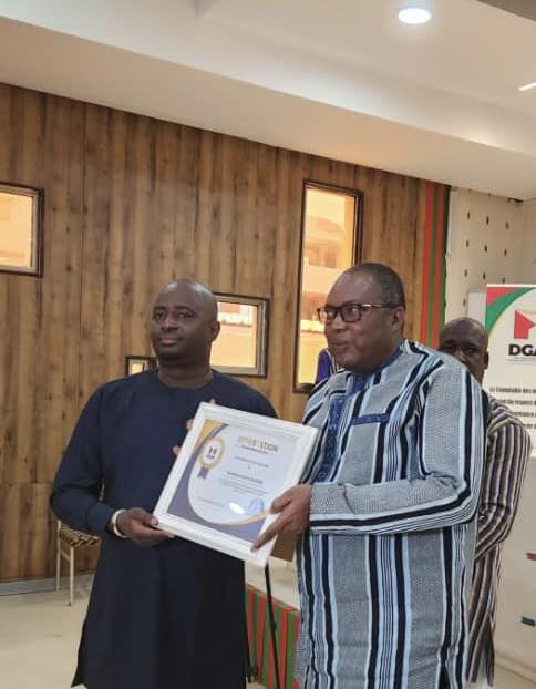 Ainsi quatre directeurs généraux ont reçu une attestation de reconnaissance : Madame Léa ZAGRÉ / RIMTOUMDA, Madame Edith BELEM /DAMIBA, Monsieur Karim NIGNAN et L’Intendant-Colonel Major Yamba Léonard OUOBA.