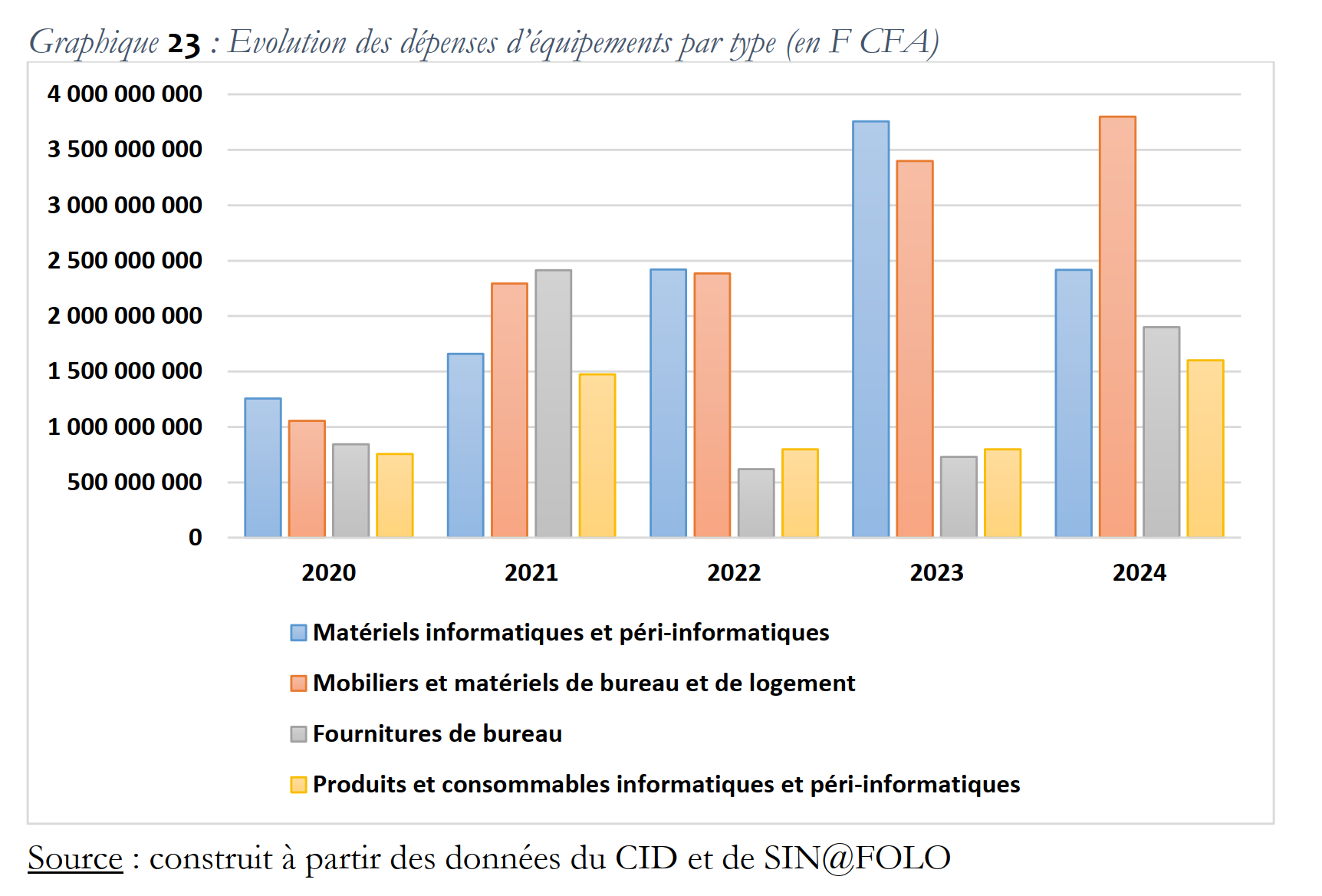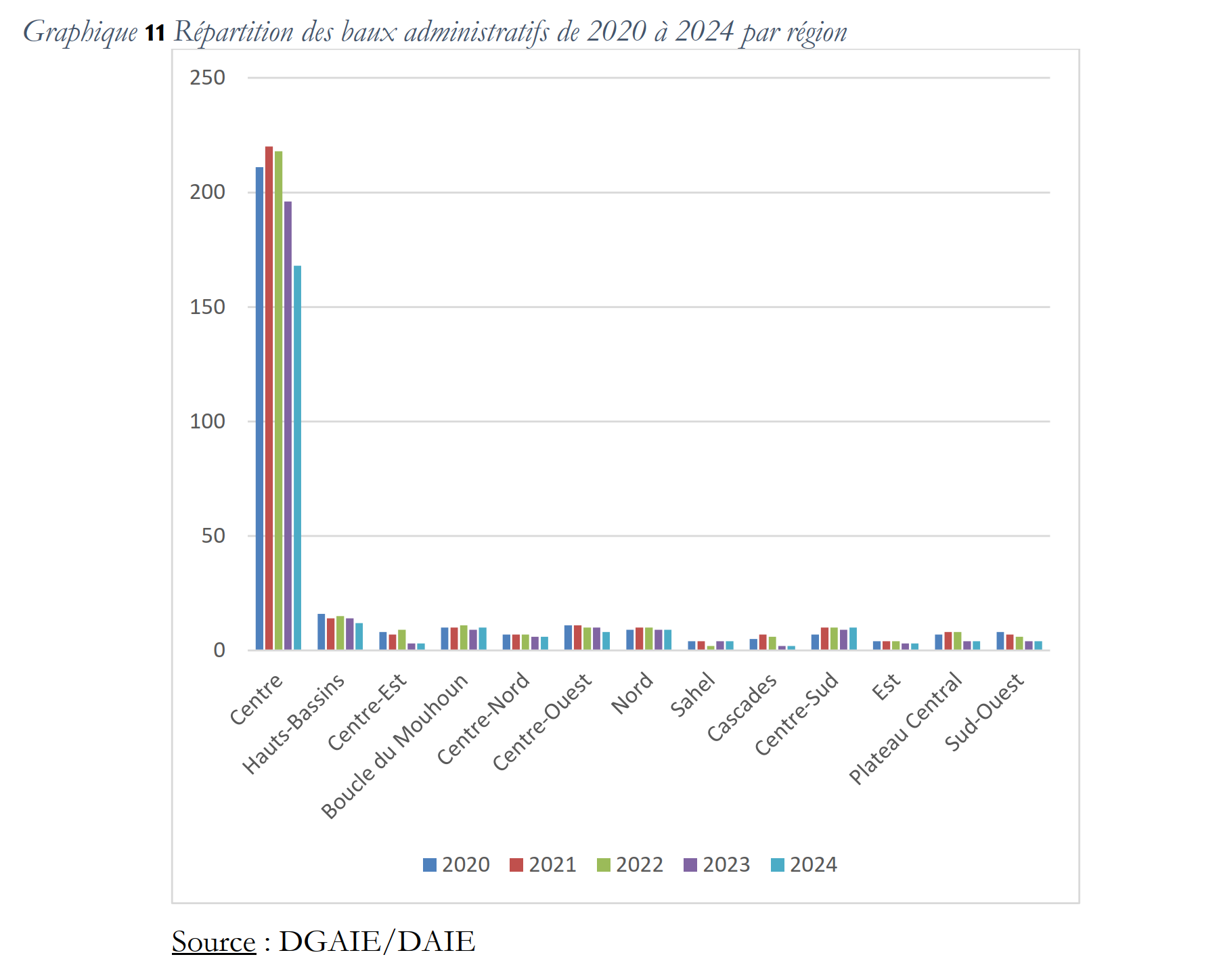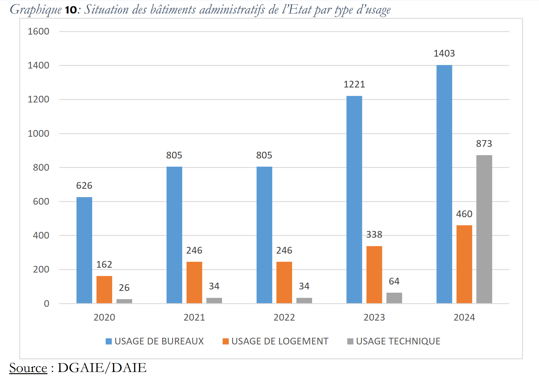 Les graphiques ci-dessous sont conçues sur base des données de l’édition 2025 de l’annuaire statistique des affaires immobilières et de l’équipement de l’Etat