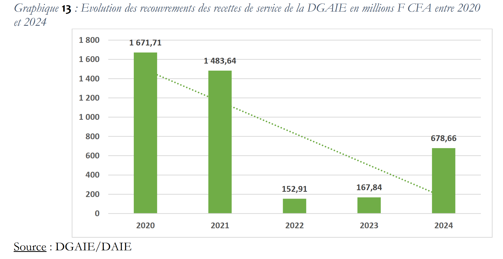 Dans un souci de redevabilité, la DGAIE a initié l’élaboration et la diffusion d’un annuaire statistique qui vise à mettre à la disposition de toutes les parties intéressées, des informations statistiques sur l’évolution des indicateurs dans le cadre de la gestion du patrimoine non financier de l’Etat.